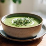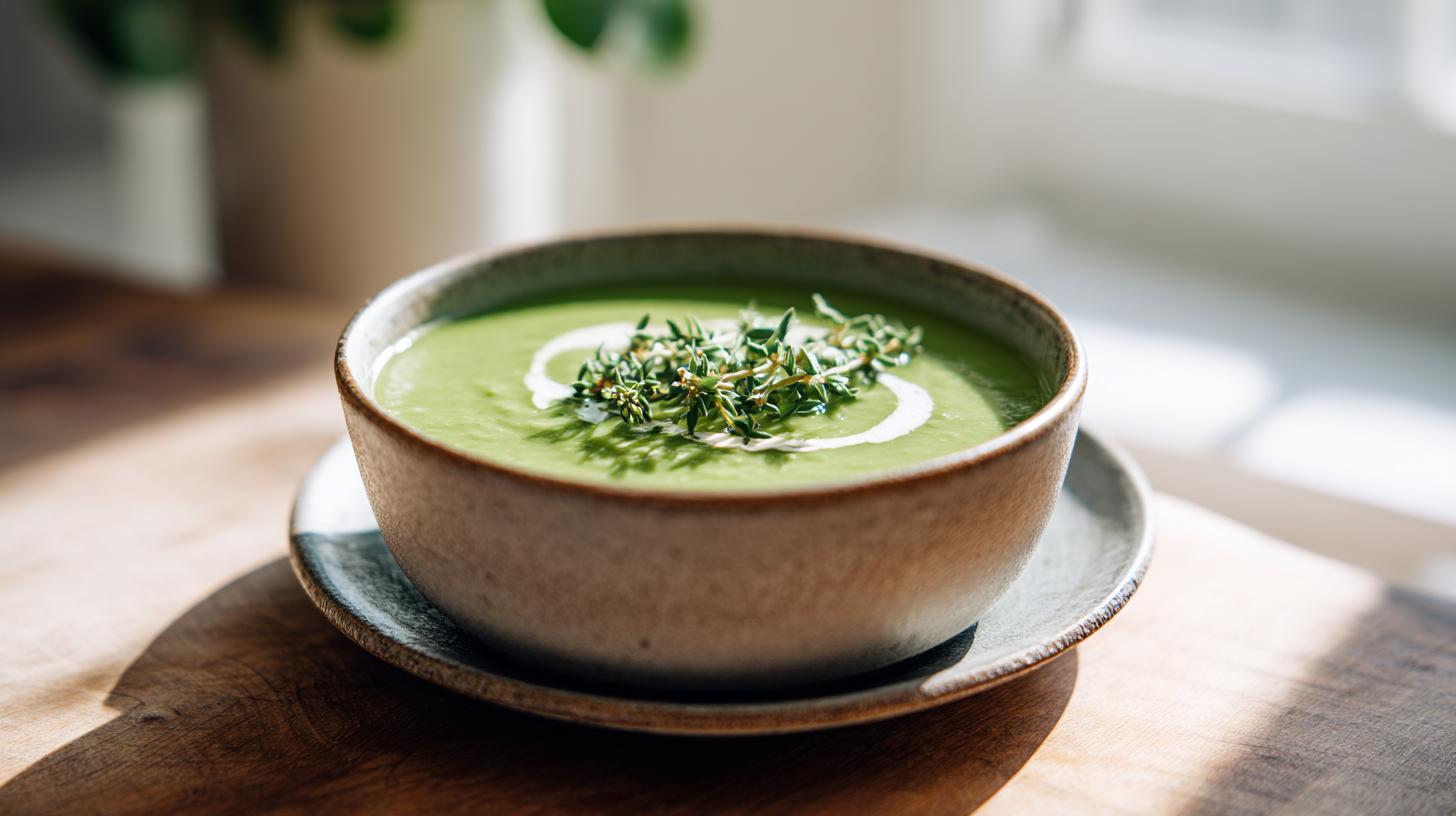 A creamy, elegant artichoke soup with leeks and lemon, perfect for cozy meals or stylish dinner parties.