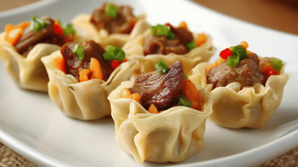 For those following a gluten-free diet, substitute the wonton wrappers with gluten-free alternatives or use rice paper. To make this recipe vegan, replace the beef with finely chopped mushrooms or tofu and use vegan wrappers.