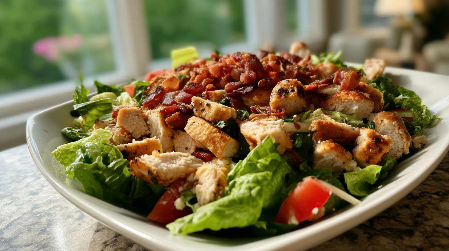 For best flavor, use freshly grilled or poached chicken and thick-cut crispy bacon. Avoid over-dressing to keep the salad crisp.