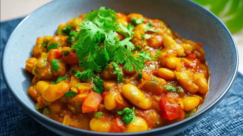 A hearty, flavorful curry made with creamy butter beans and aromatic spices, perfect for a nutritious and comforting meal.