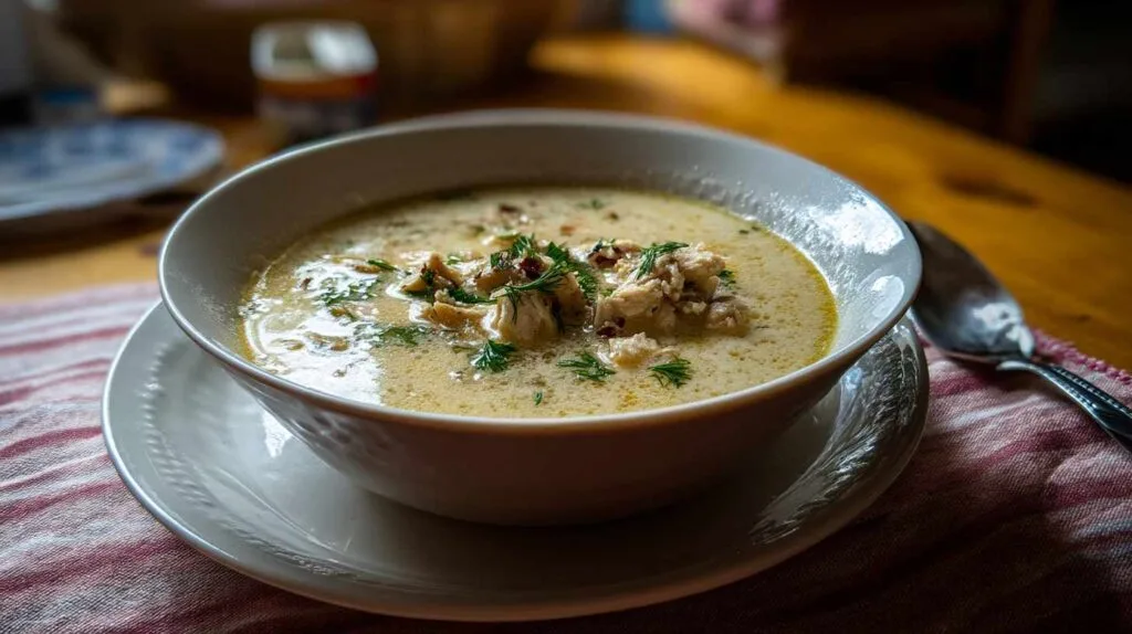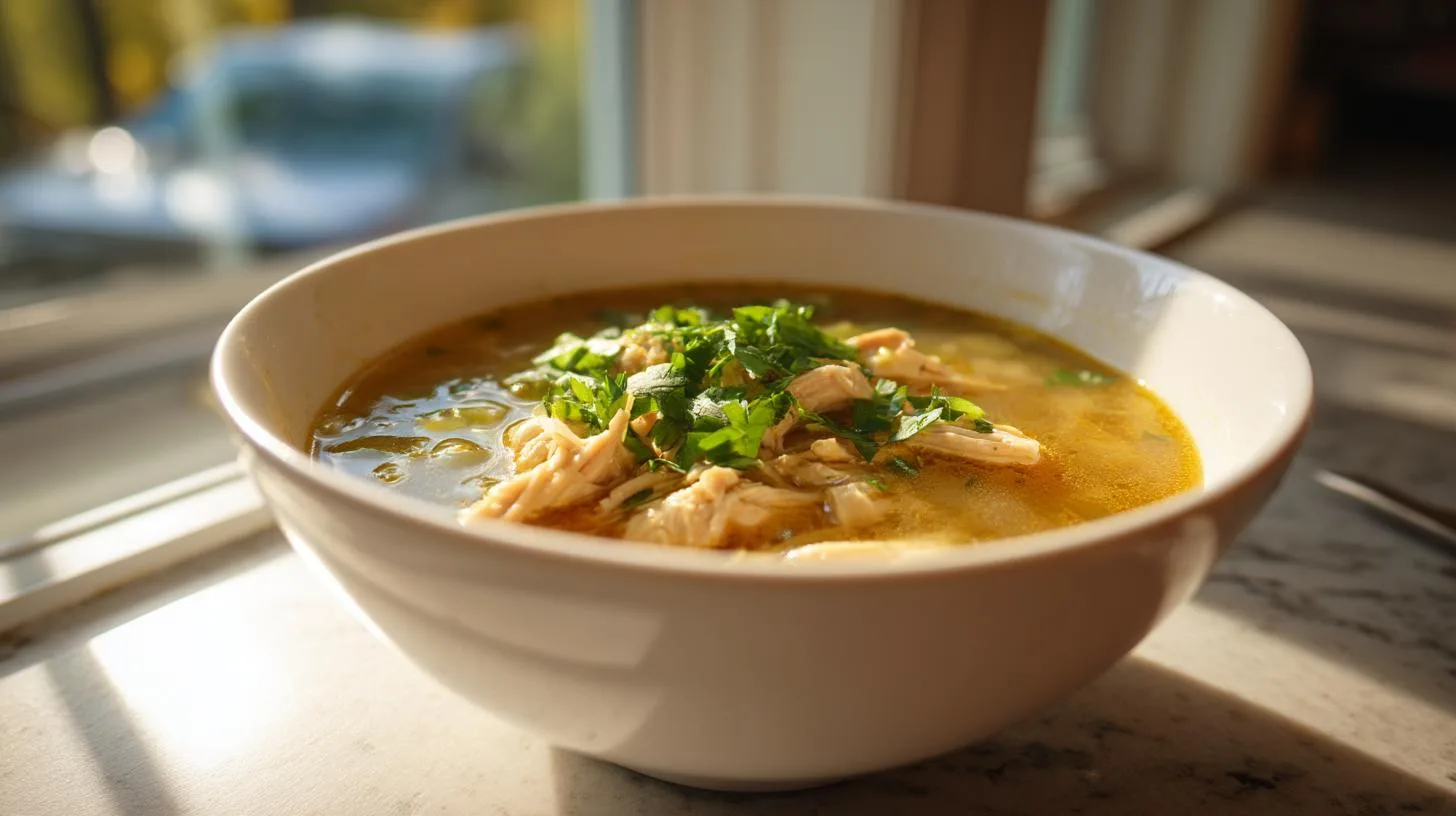 A comforting and tangy chicken pickle soup packed with savory chicken, dill pickles, and fresh herbs, perfect for any season.