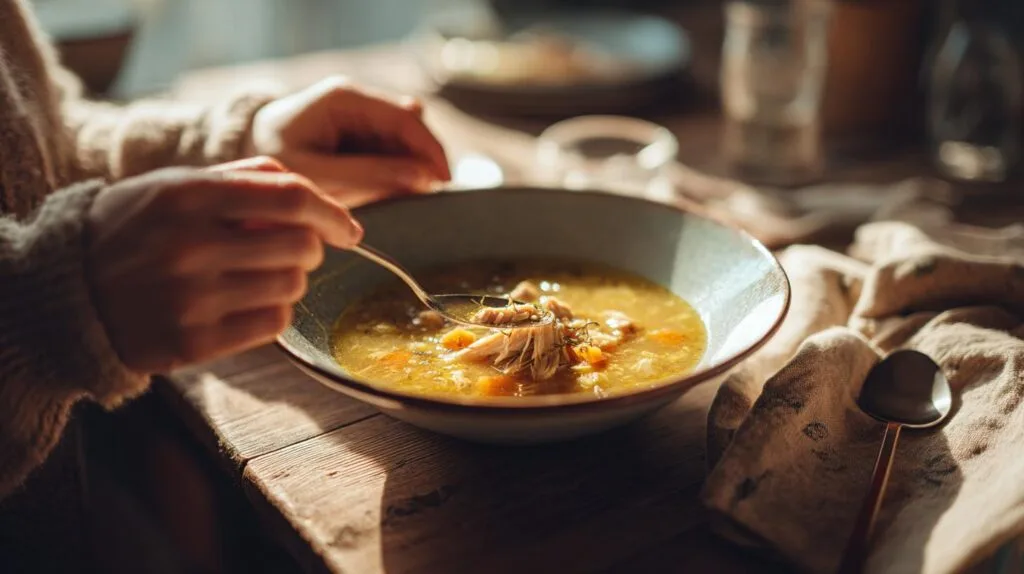This soup is not only delicious but also packed with nutrients. The combination of chicken and pickles introduces a rich source of protein and probiotics, which are essential for a healthy gut. It’s a great option for those looking to enjoy a hearty meal without compromising on health.