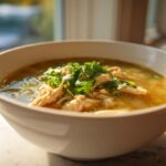 A comforting and tangy chicken pickle soup packed with savory chicken, dill pickles, and fresh herbs, perfect for any season.