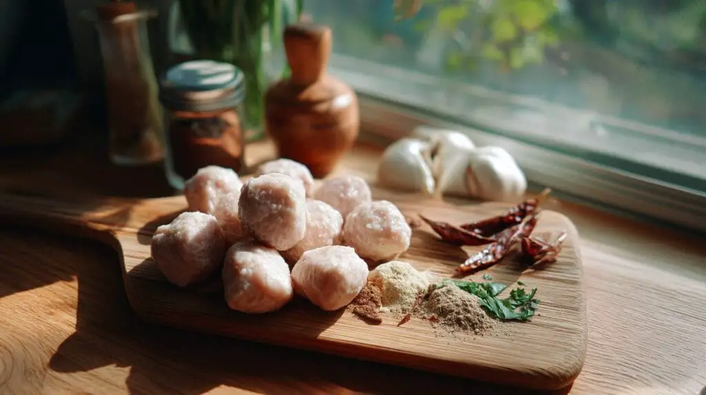 - Using a spoon or your hands, shape the marinated chicken mixture into small balls.