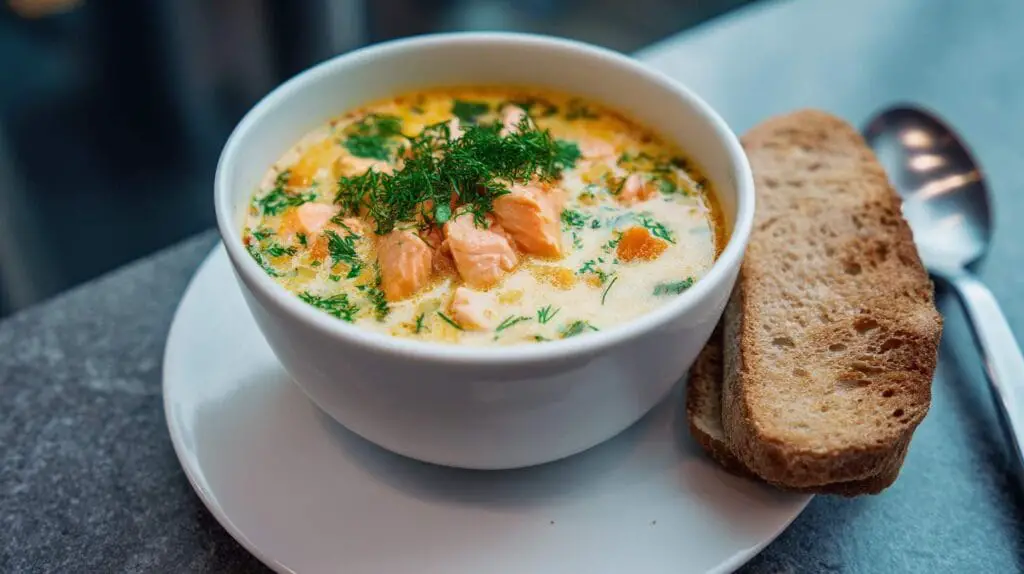 A creamy, comforting salmon soup packed with fresh herbs, vegetables, and a hint of citrus perfect for a cozy dinner or elegant starter.