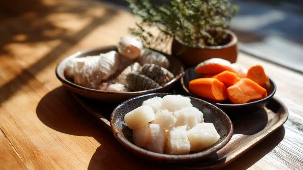 What sets this recipe apart is its blend of traditional ingredients with modern cooking techniques. The use of fresh herbs and spices elevates the flavor profile, while the incorporation of contemporary cooking methods ensures that the soup is easy to prepare yet sophisticated enough to serve at dinner parties. The addition of ingredients like goji berries and dried scallops further enhances the dish’s complexity, offering a delightful culinary journey.