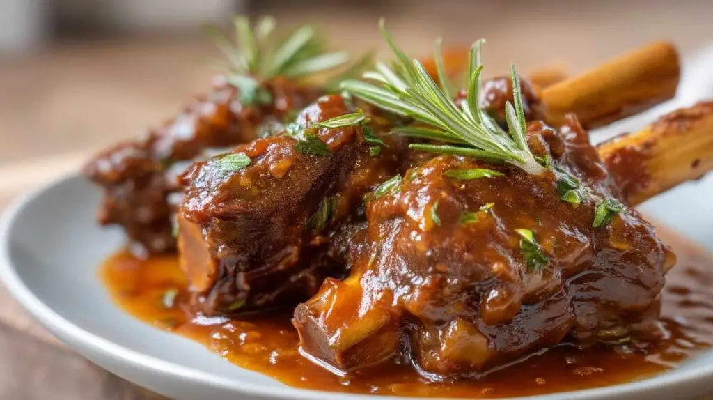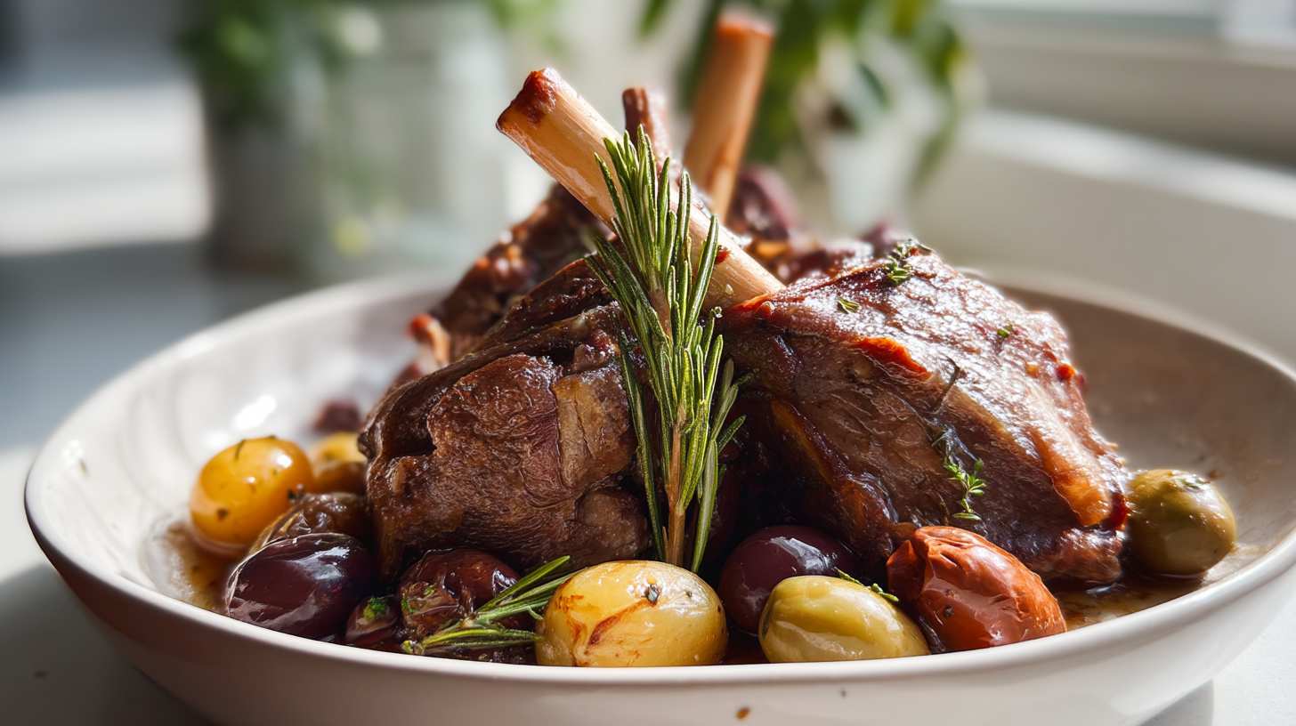 Tender lamb shanks slow-cooked in a rich tomato, red wine, and herb sauce, full of authentic Mediterranean flavors and melt-in-your-mouth goodness.