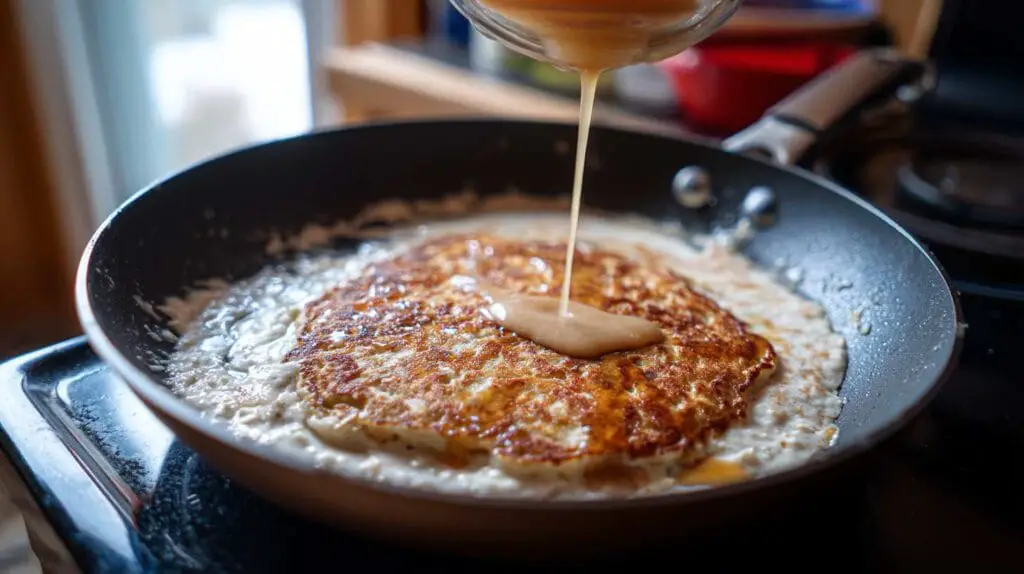 - Carefully flip the pancake and cook for an additional 2 minutes, or until golden brown and cooked through.