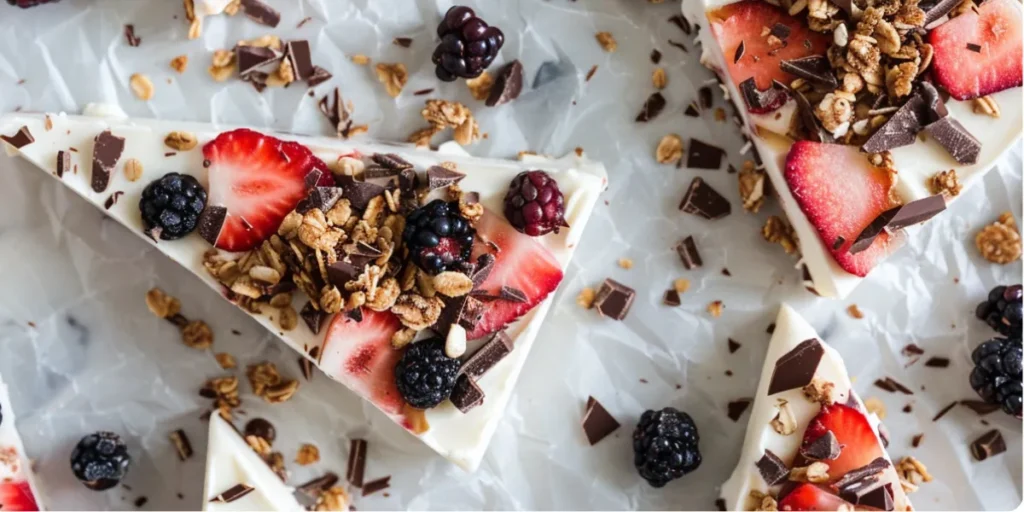 This frozen treat layers Greek yogurt with dark chocolate and fresh berries or nuts. A crunchy, creamy snack for hot days or late-night indulgence.