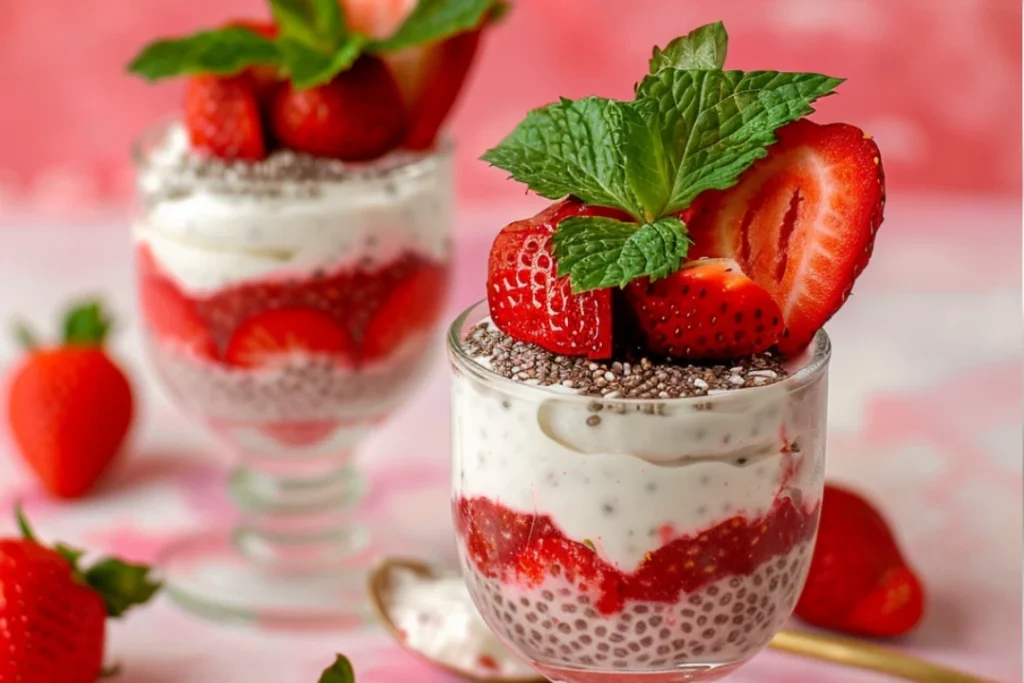 This vibrant pink treat blends fresh strawberries with chia and coconut milk for a silky-smooth texture. A sweet and nutritious option for summer or post-dinner cravings.
