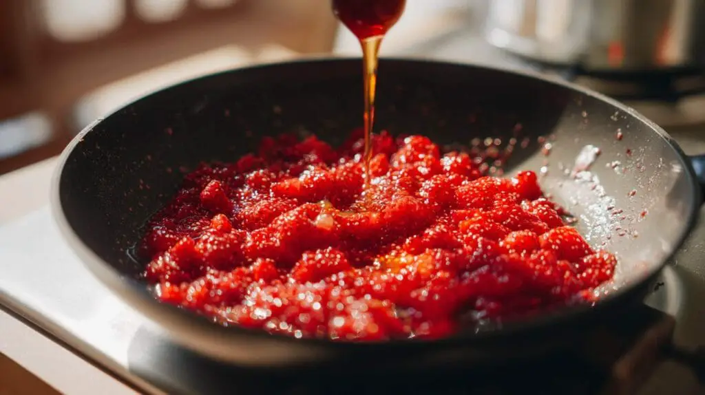- Start by blending the fresh strawberries in a blender until smooth. If you prefer some texture, you can leave small chunks of strawberries unblended.