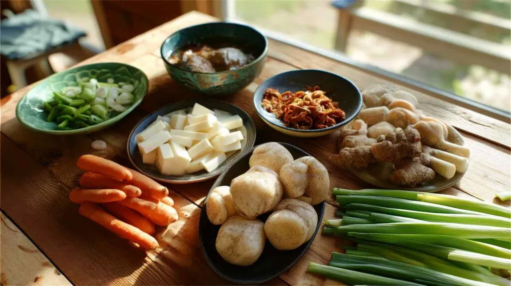 6. Add fish cakes and optional ingredients like tofu, carrots, radish, or mushrooms. Simmer for 10–15 minutes.