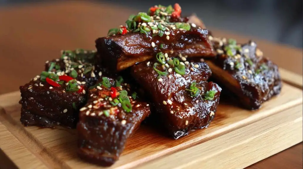 Tender, flavorful Korean short ribs marinated in a rich blend of soy, garlic, sesame oil, and pear, then grilled or braised to perfection.