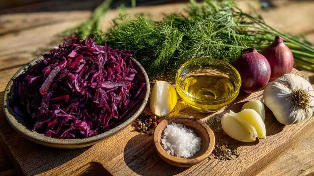 Red cabbage is rich in vitamins C and K, while olive oil provides heart-healthy monounsaturated fats. The inclusion