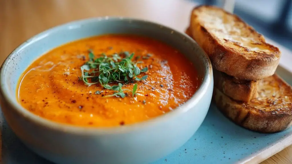 Serve your roasted vegetable soup with a side of crusty bread or a fresh green salad for a complete meal. For a gourmet touch, drizzle a bit of truffle oil over the soup before serving. Additionally, pairing it with a light white wine can enhance the meal’s flavors.