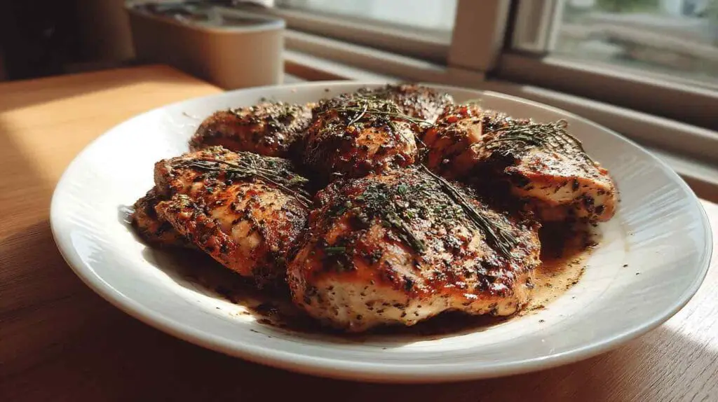 10. Roast: Place meat in a baking dish and roast for 25–30 minutes (165°F for chicken, 145°F for lamb).