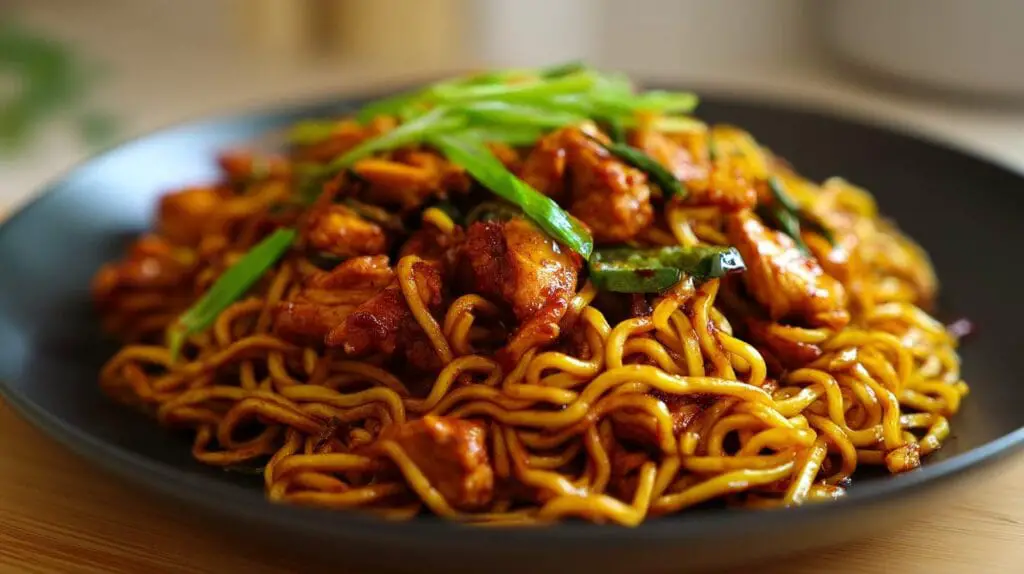 Spicy chicken noodles offer the perfect fusion of tender chicken, crunchy vegetables, and chewy noodles tossed in a fiery, flavorful sauce ideal for spice lovers and quick weeknight dinners.