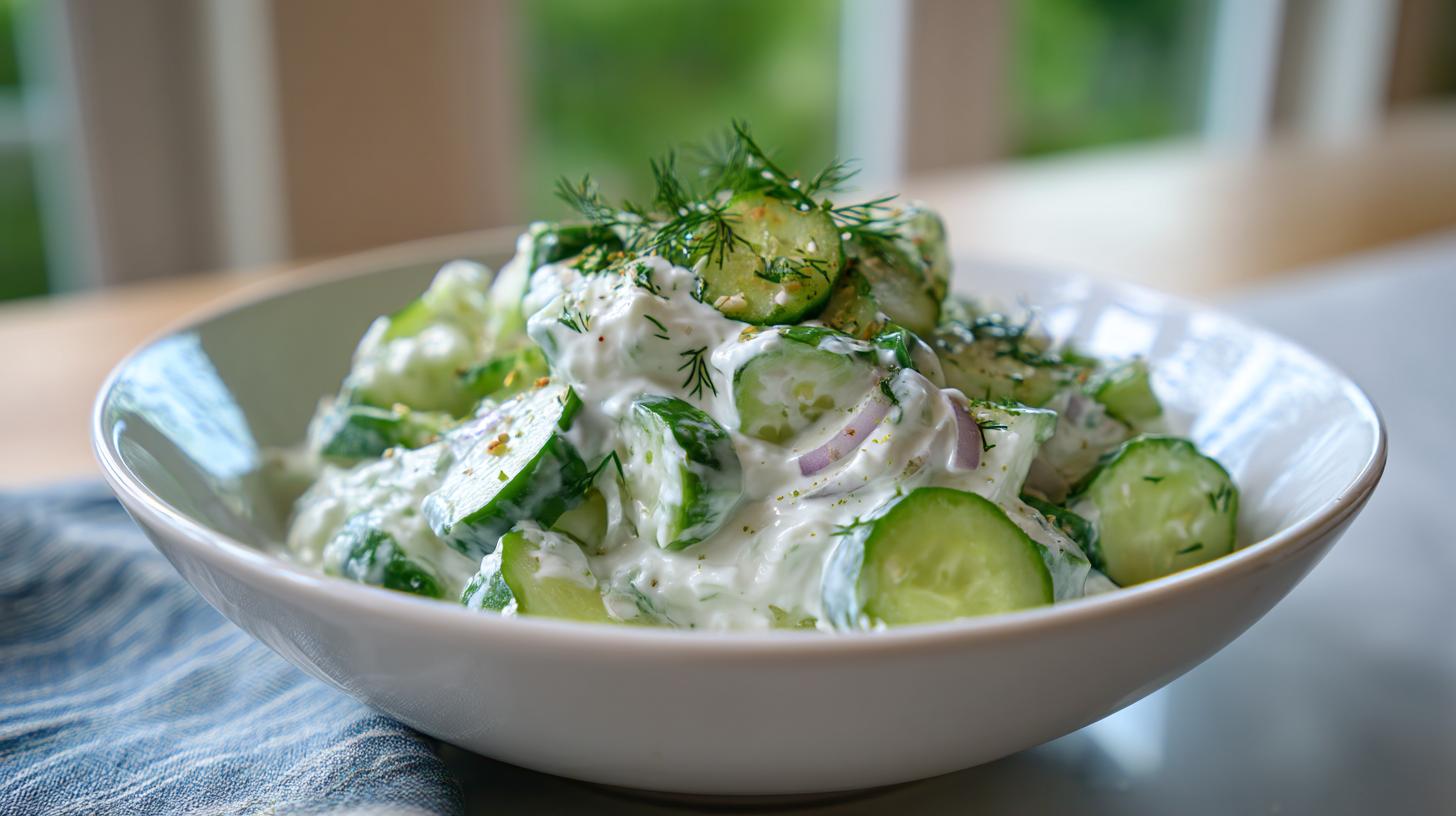 - In a medium-sized bowl, combine Greek yogurt, grated cucumber, minced garlic, olive oil, lemon juice, and chopped dill.