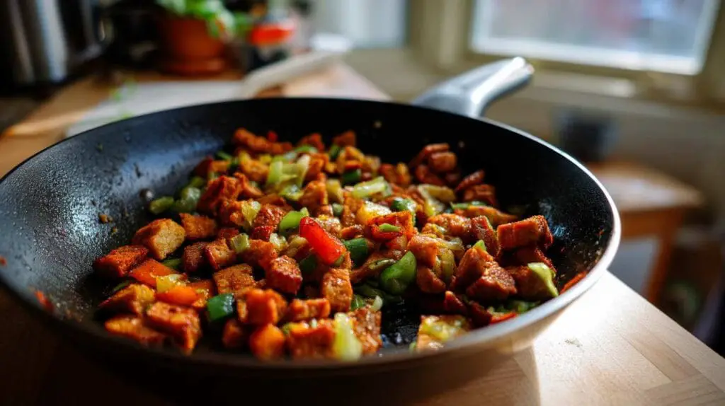 Avoid overcrowding the skillet, as this can prevent the seitan from browning properly. Work in batches if necessary to ensure everything cooks evenly and develops the right texture and flavor.