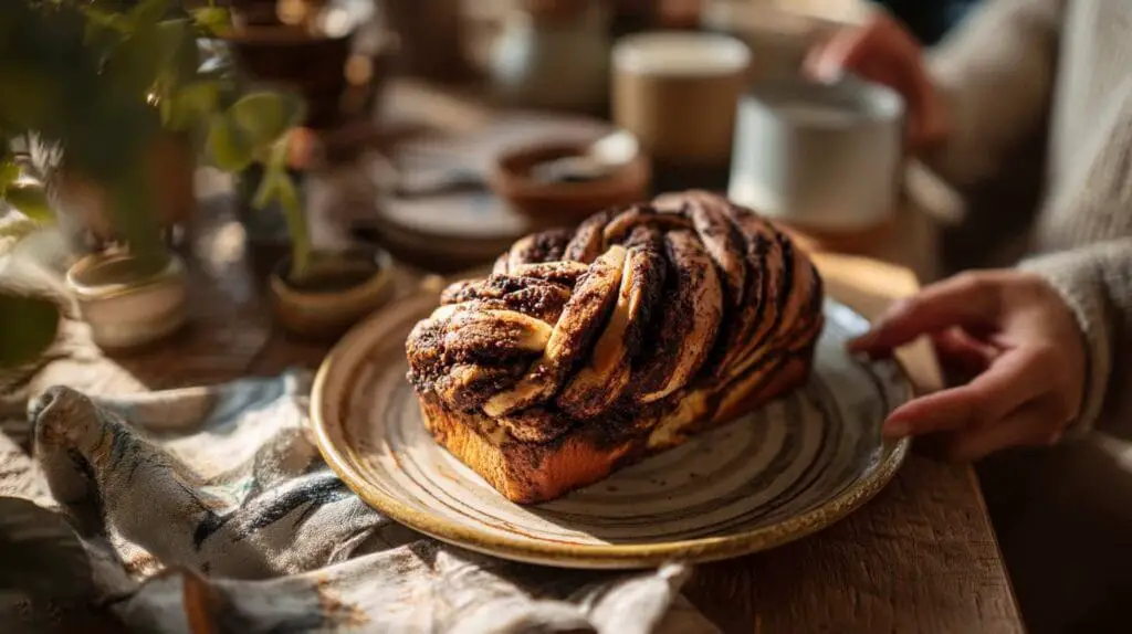 Serve your vegan chocolate babka warm with a dollop of coconut whipped cream or a scoop of vegan vanilla ice cream. It makes a delightful addition to brunch spreads or as an afternoon tea treat.