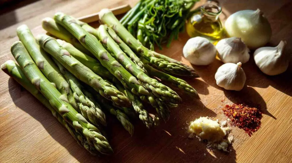 - Begin by prepping your vegetables: chop the onion, mince the garlic, and cut the asparagus into 1-inch pieces. Peel and dice the potato.