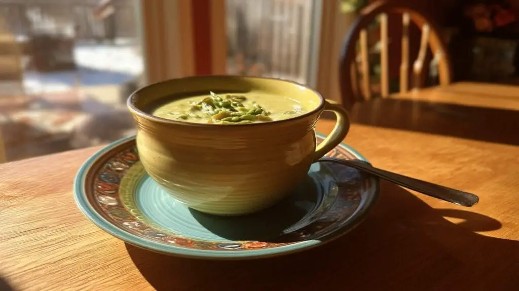 One of the standout features of this recipe is its creamy texture achieved without any dairy, thanks to the use of coconut milk and a bit of potato. Additionally, the soup’s vibrant green color is as appealing to the eyes as its flavor is to the palate, making it a show-stopper at any dinner party.