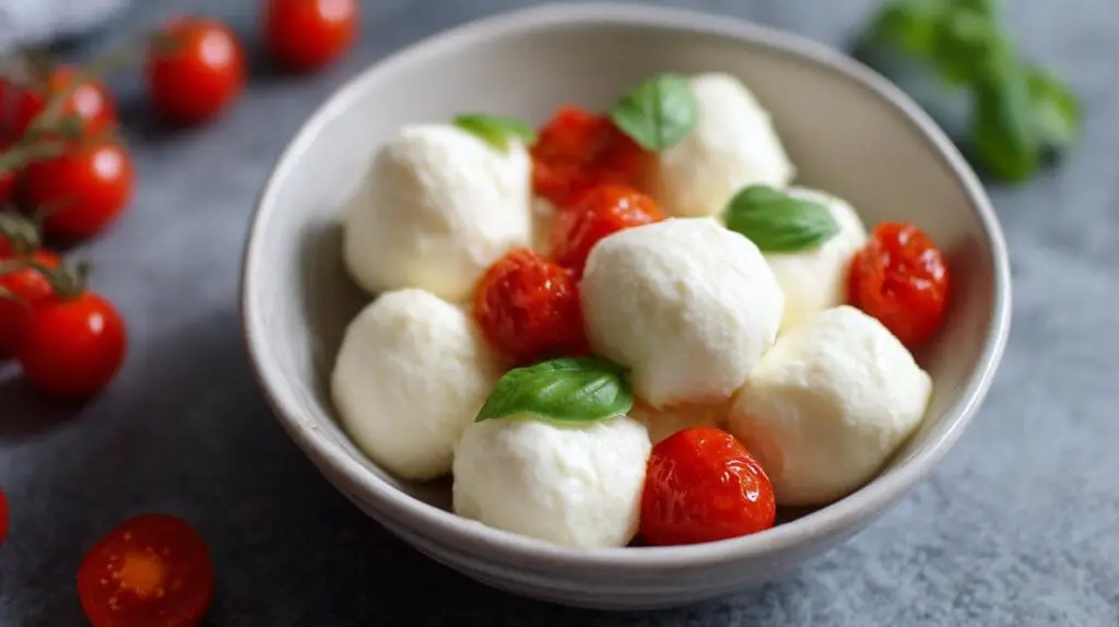 Creamy, dairy-free vegan mozzarella balls made from cashews and tapioca starch. Perfectly stretchy, flavorful, and ideal for snacks, salads, or plant-based dishes.