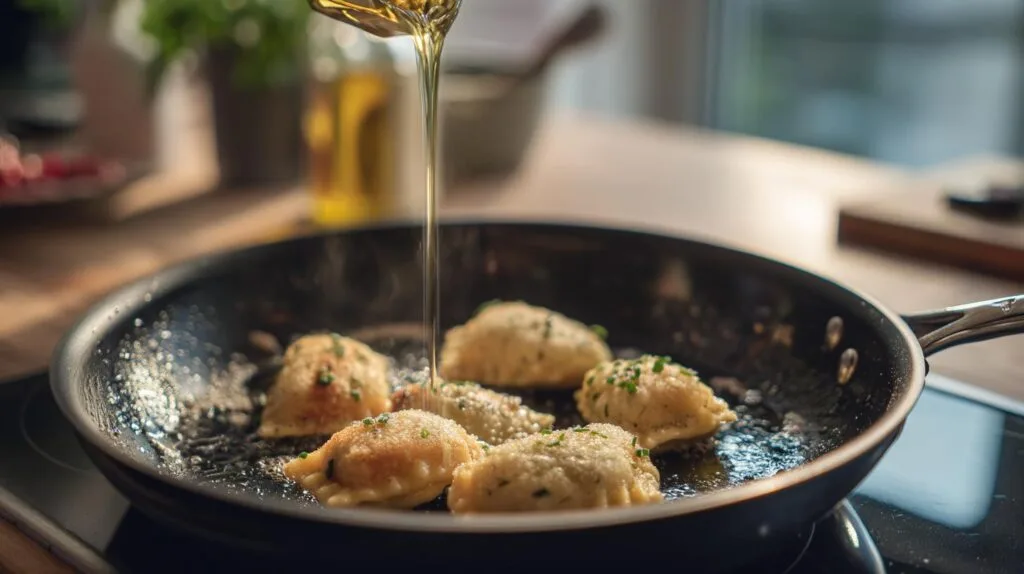 Dust ravioli with flour before cooking to prevent sticking. Make sure to seal edges well to avoid leakage.