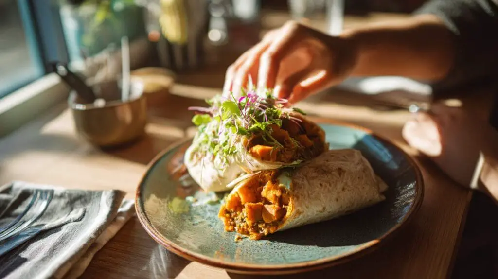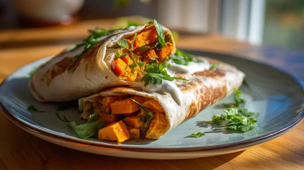 This vegan sweet potato burrito is a nutritional powerhouse, packed with vitamins, minerals, and fibers that support a healthy lifestyle. The sweet potatoes provide a natural sweetness and are high in beta-carotene, while black beans add protein and fiber for a balanced meal.